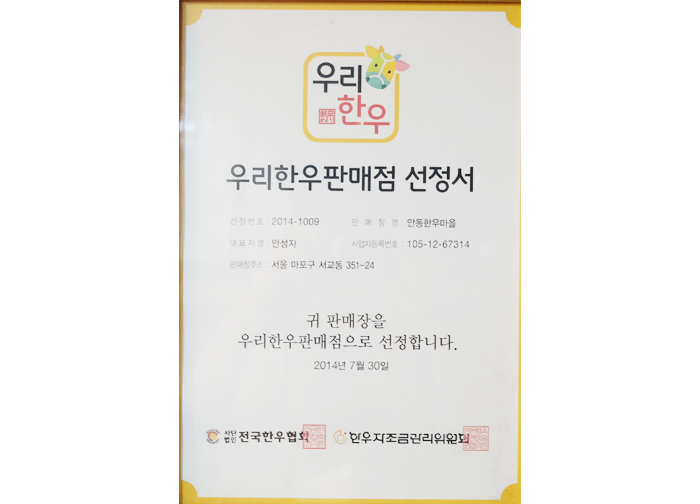 안동한우마을은 주인장의 음식에 대한 애정으로 지난 솜씨, 맵씨, 마음씨와 교양을 두루 갖추어